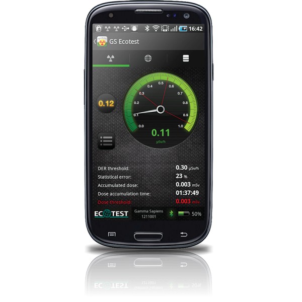 Inovace letošního roku v oblasti dozimetrů. Tento gadget přemění chytrý telefon v plnohodnotný dozimetr s možností sledování a záznamu naměřených dat do tabulky či grafu, případně i do mapy s polohou a hodnotou jednotlivých měření.