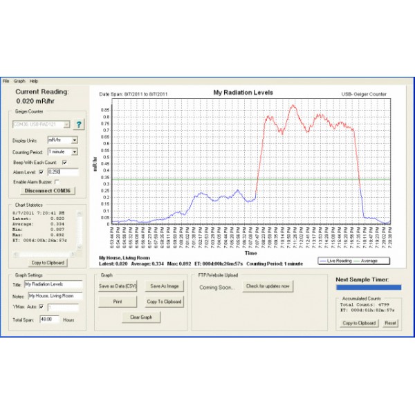 Zařízení je určeno pro nepřetřžité měření radiologické situace v prostorách. Měřená hodnota je zobrazena na připojeném počítači a může být ukládána do tabulky, grafu či rovnou na web. Ovládání a nastavení programu je intuitivní. Je možné vyvíjet vlastní aplikace, které budou s přístrojem komunikovat přes COM/USB port. K tomuto účelu lze použít např. jazyk C++.